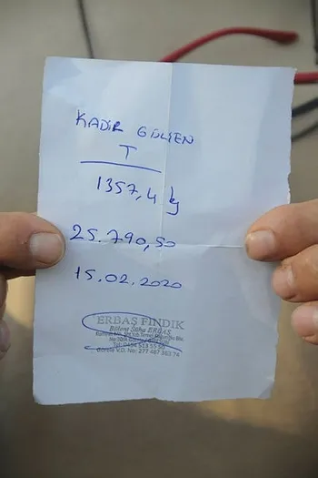 Kadir Gülşen (60) "Bir ton 357 kg fındık vermiştim. Karşılığında 25 bin lira alacaktım. Adam yer yarıldı içine girdi sanki, kayboldu. Elimizde sadece bize ödeme yapacağına dair kendi yazdığı borç kağıdı kaldı." ifadelerini kullandı.