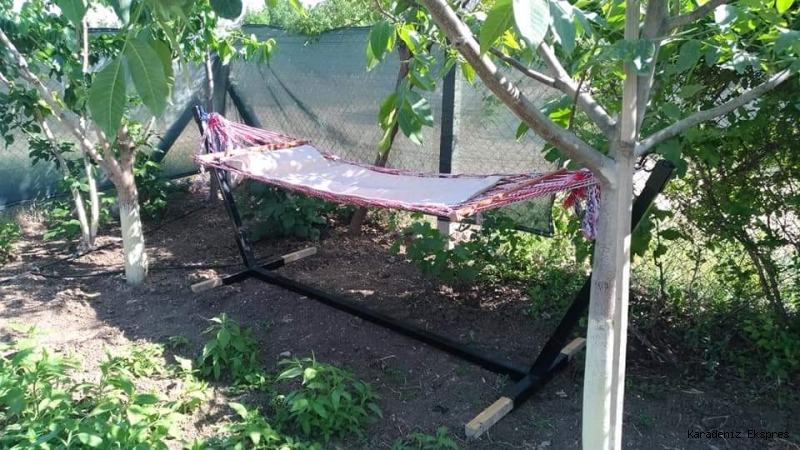 Hamağı bahçenizin istediğiniz köşesine taşıyabilir hatta balkonunuza da koyabilirsiniz. Hamağı kurması 1 dakika, bozması 50 saniye sürüyor. Yapmak isteyenler için garantili tarif ve ölçüler resimlerde yer almaktadır. Bahçede çalışdıktan sonra dinlenmek hakkımız.